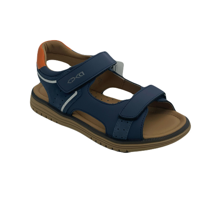Лаконичные легкие сандалии синего цвета в спортивном стиле. Верх изделия выполнен из комбинации натуральной и экокожи. Стелька и подкладка из натуральной кожи. Прочная и долговечная подошва из термоэластопласта продлит срок службы обуви.