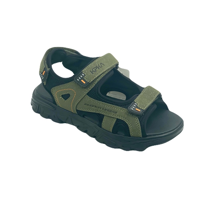 Удобные сандалии цвета хаки в спортивном стиле. Верх выполнен из комбинации прочного текстила и экокожи. Подкладка текстильная с добавлением хлопка. Стелька выполнена из натуральной кожи. Легкая амортизирующая подошва из ЭВА придаст легкости при ходьбе.